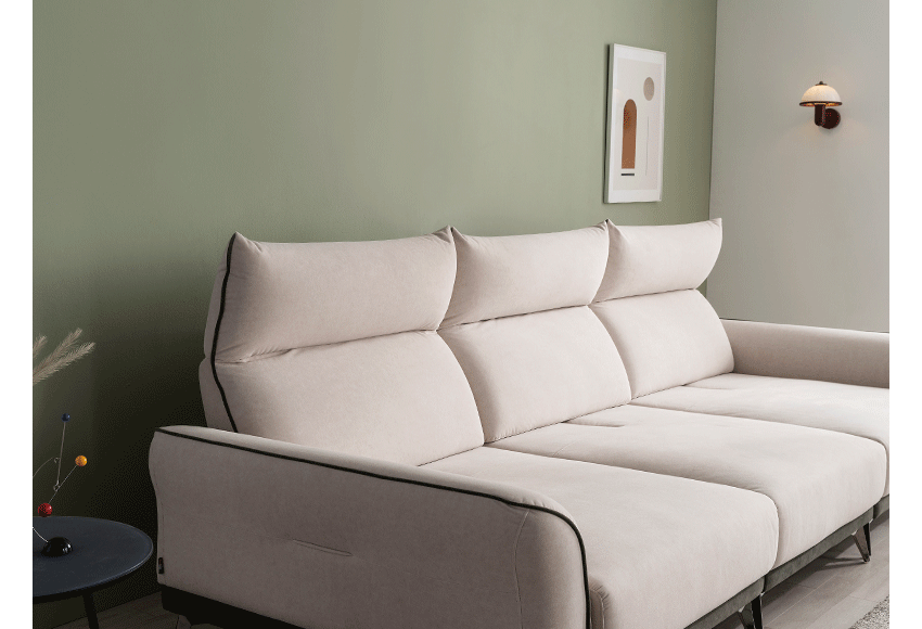 기능성 패브릭, E0 합판, 철제다리 밀도 33kg 폼, 독립스프링 내장