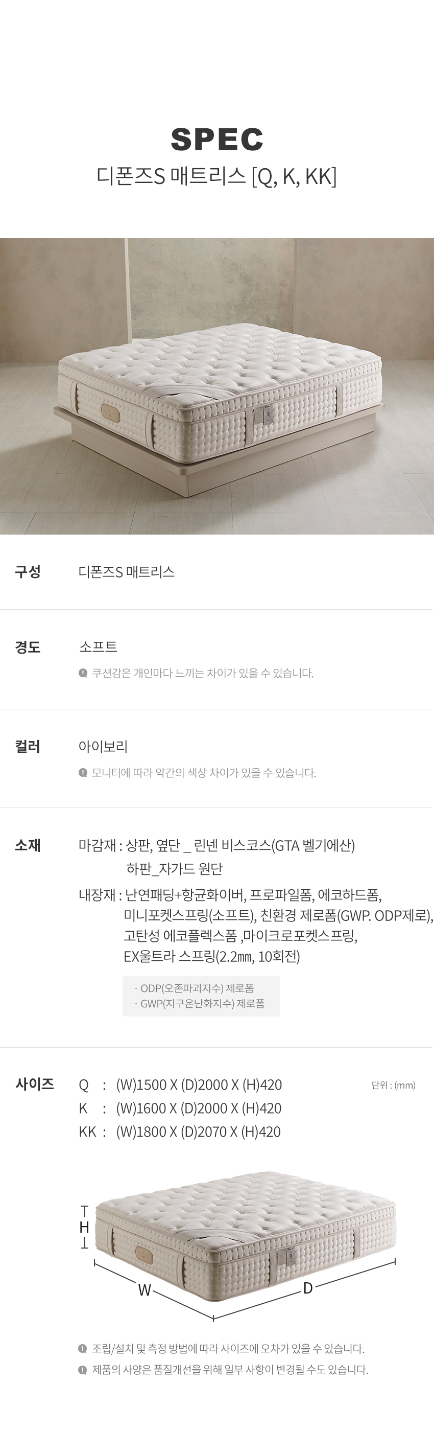 디폰즈S 매트리스 [Q, K, KK]
