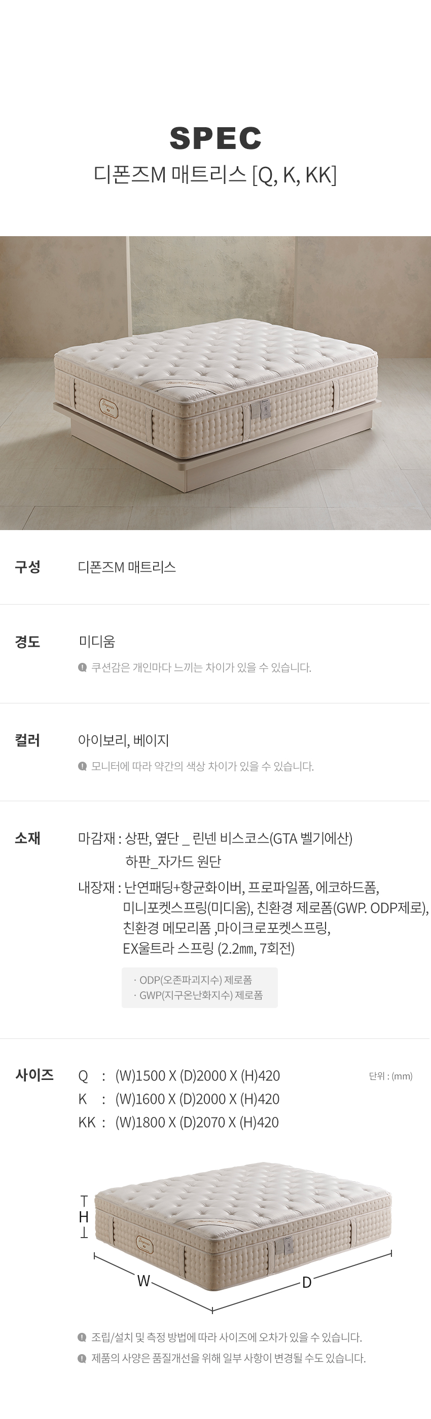 디폰즈M 매트리스 [Q, K, KK]