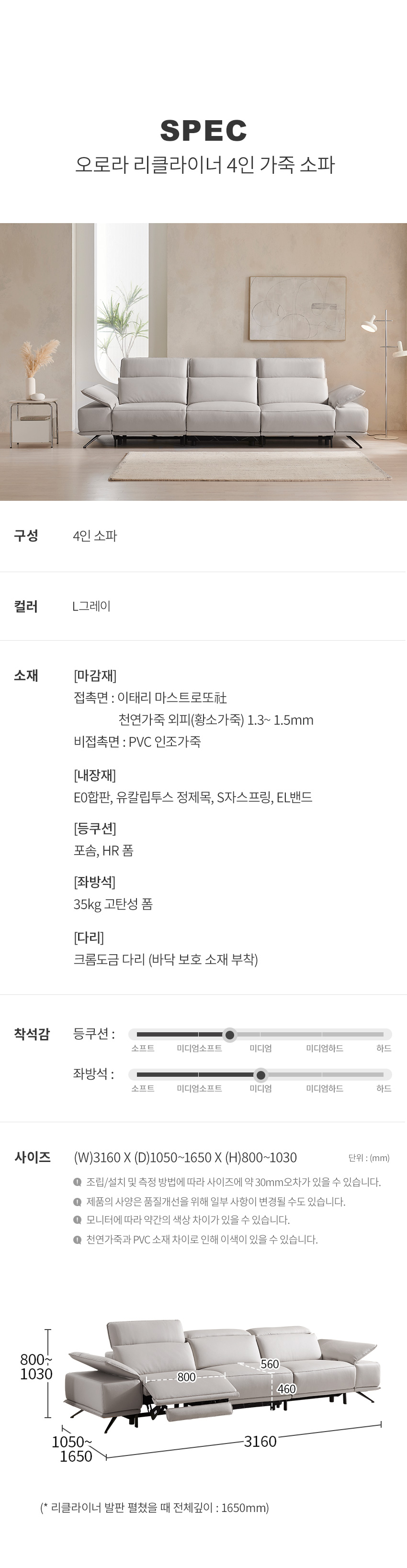 접촉면 : 이태리 마스트로또社 천연가죽 외피(황소가죽) 1.3~ 1.5mm