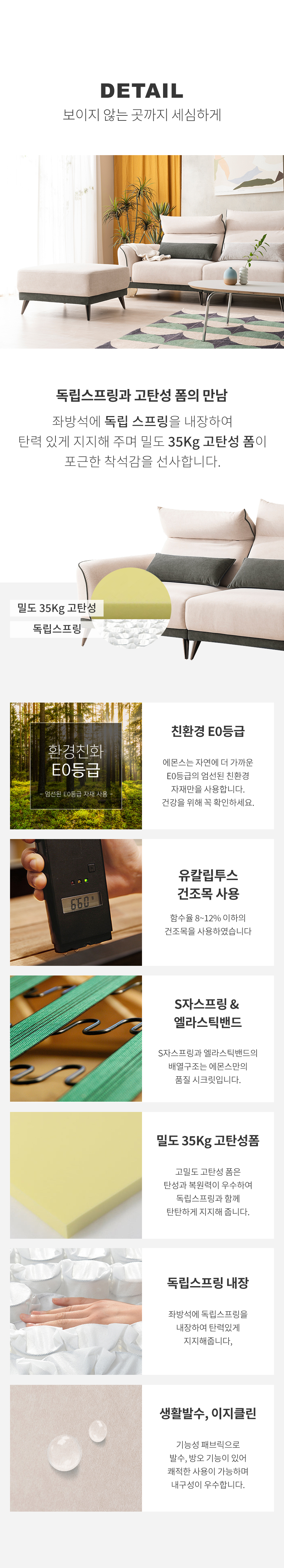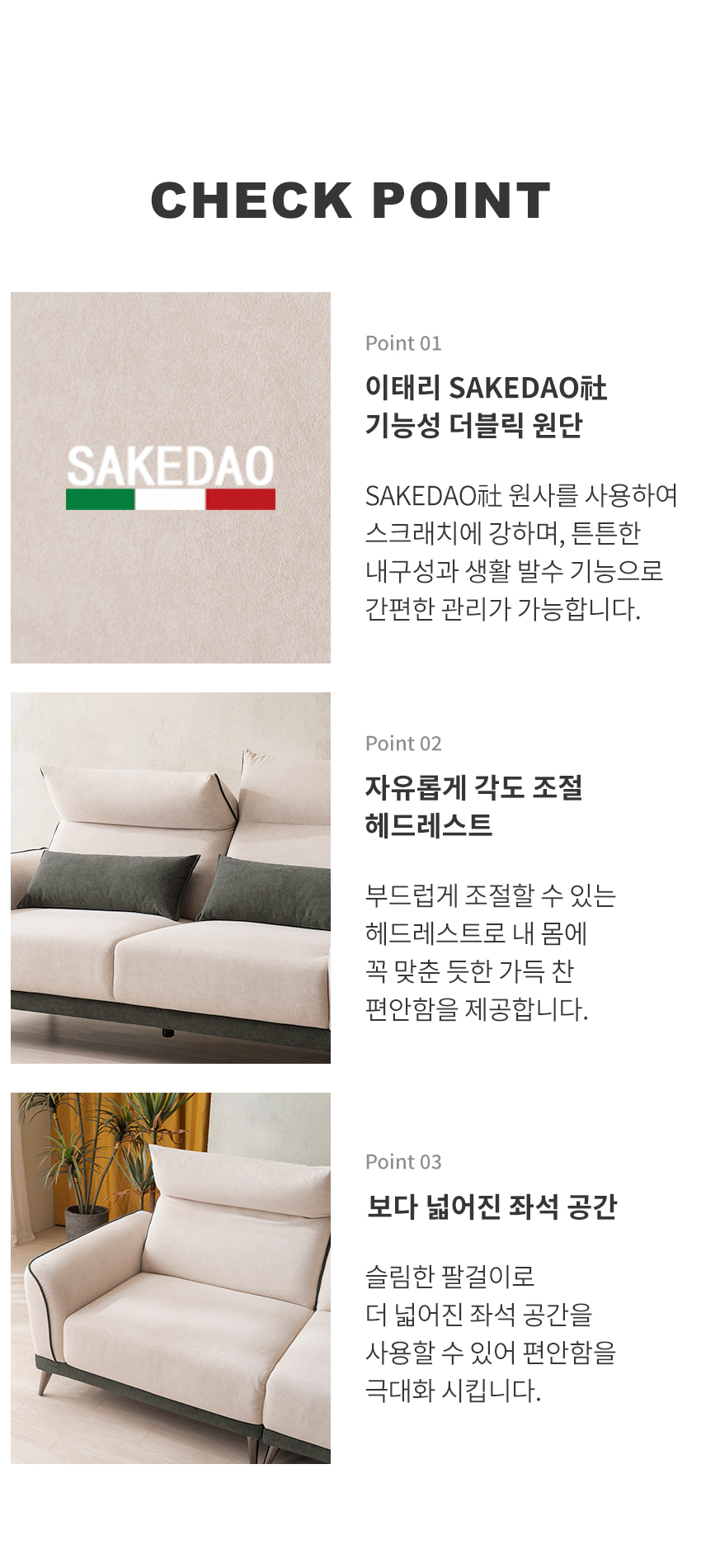 [마감재]이태리 SAKEDAO社 기능성 더블릭 원단[내장재]E0합판, 유칼립투스 건조목, 엘라스틱밴드, S자 스프링[등쿠션]포솜[좌방석]35kg 고탄성 폼, 독립 스프링[다리]크롬다리 (세이프티 디자인 적용)