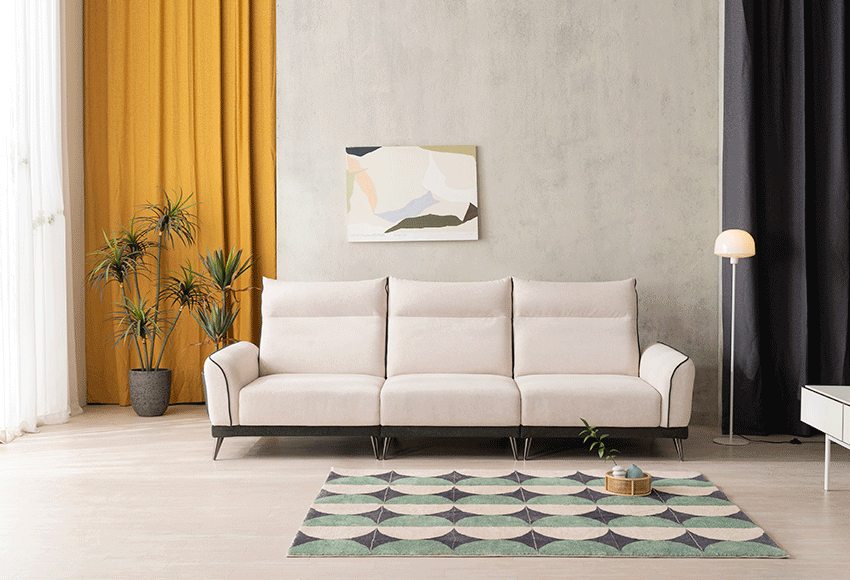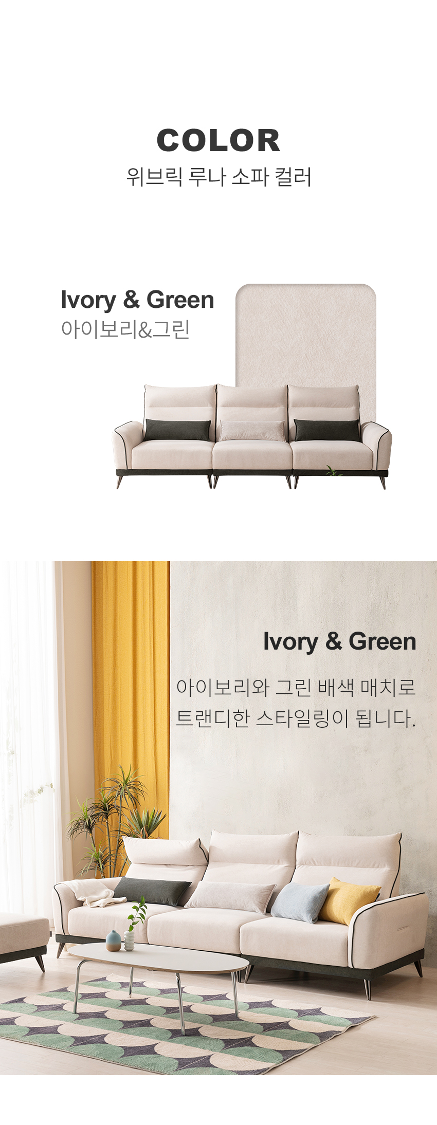 소파 : 아이보리+그린 배색쿠션 : 그린, 그레이