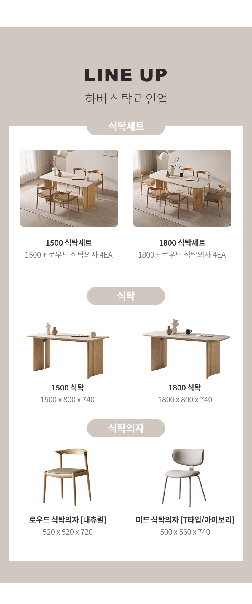 식탁 상판 : 샌드 바닐라 / 체대 : 내츄럴 애쉬