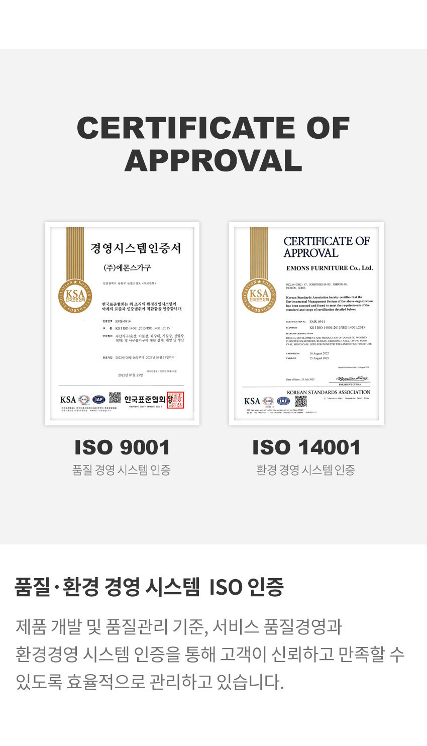 의자 : 유럽산 애쉬원목,고밀도고탄성폼, 인조가죽, 합판
