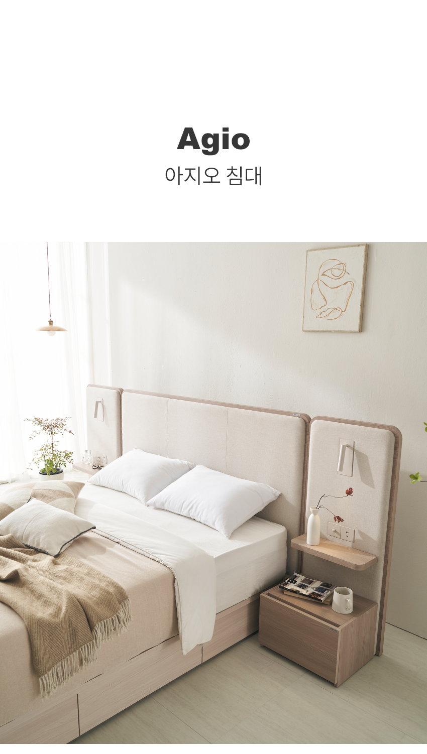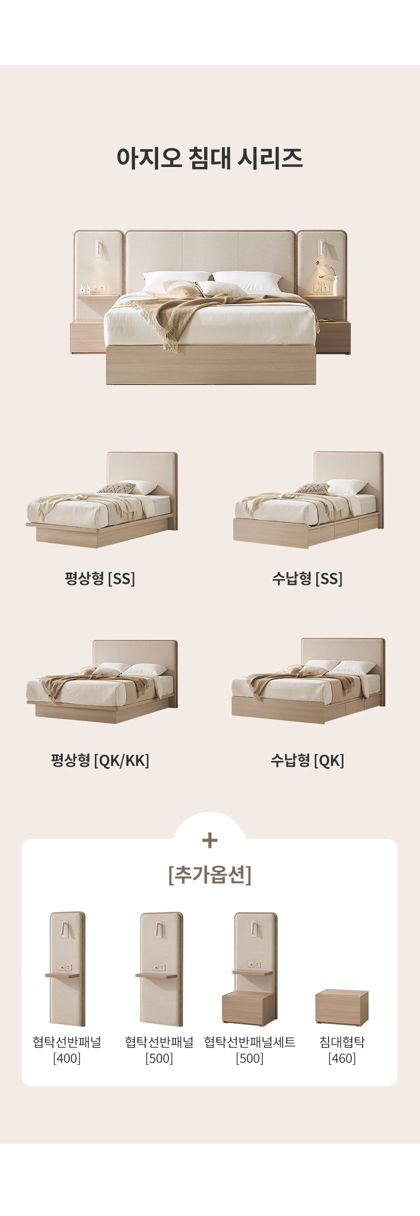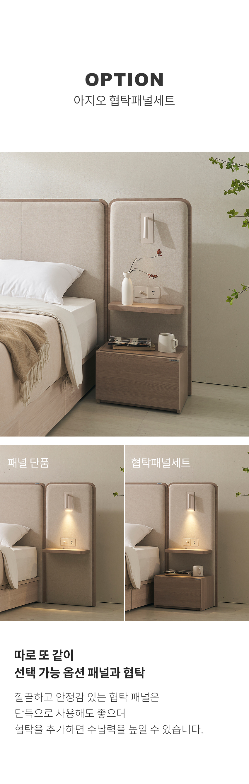 아지오 수납형 침대 프레임 협탁패널 풀세트 [QK]