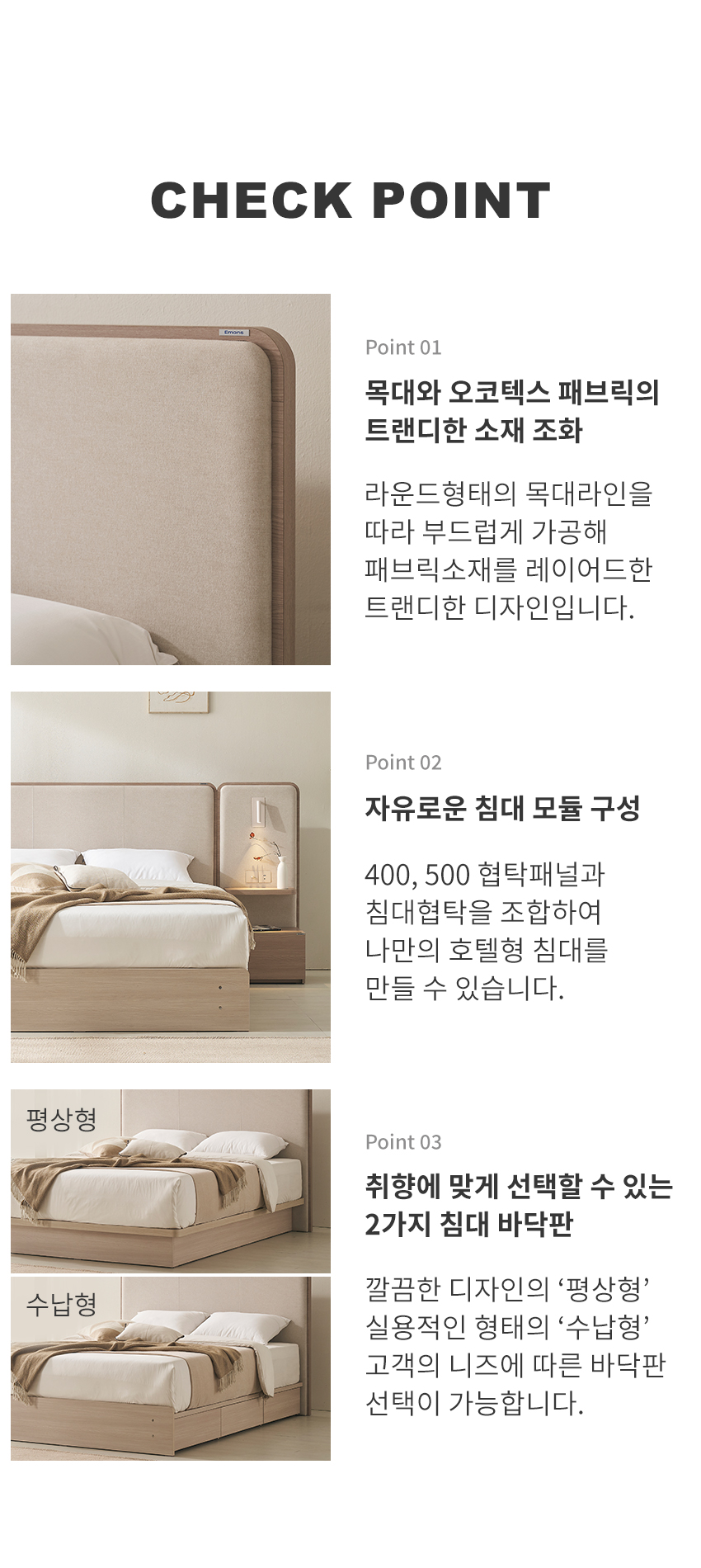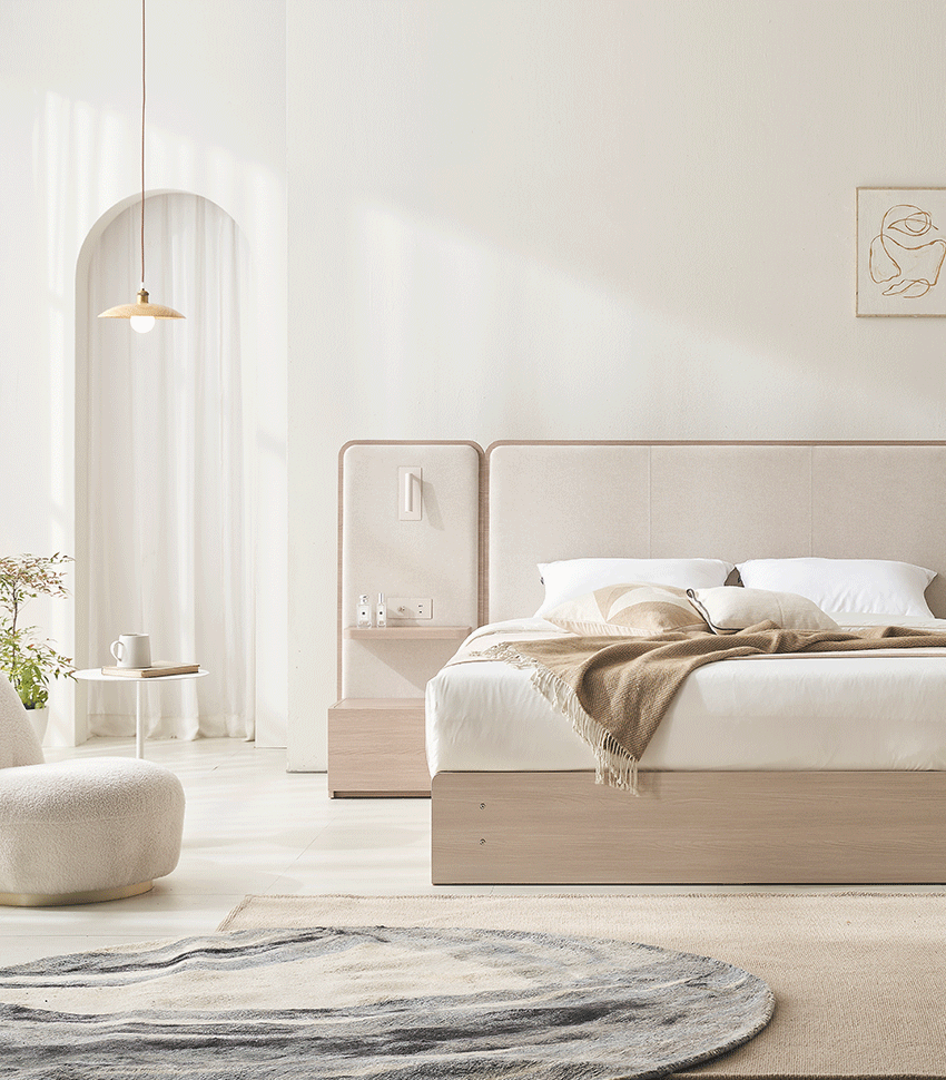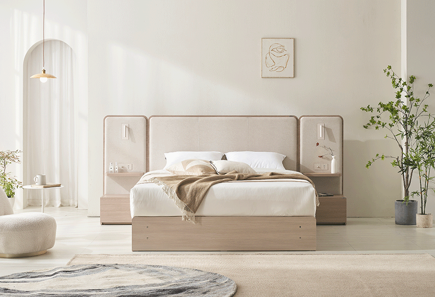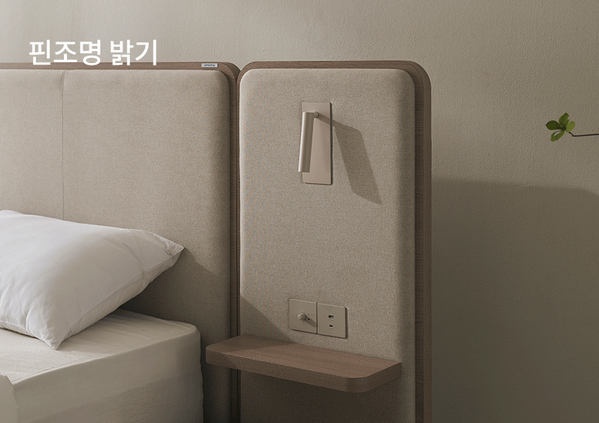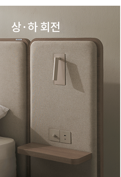 협탁선반패널 : PB(E0), MDF(E0), PVC, ABS엣지, 기능성 패브릭(항균&발수), LED핀조명, 다이얼스위치, A/C Type 충전포트