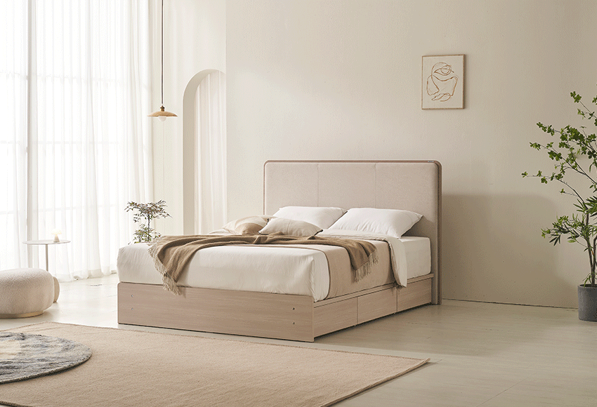 침대 [QK] : PB(E0), MDF(E0), PVC, ABS엣지, 기능성 패브릭(항균&발수)