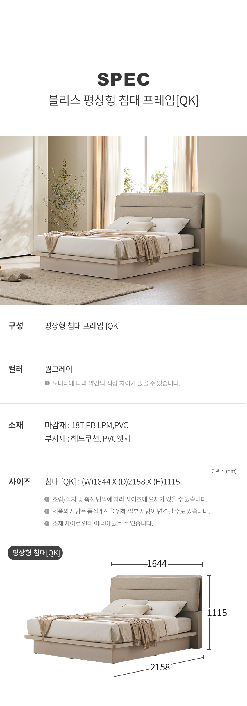 마감재 : 18T PB LPM,PVC부자재: 헤드쿠션, PVC엣지