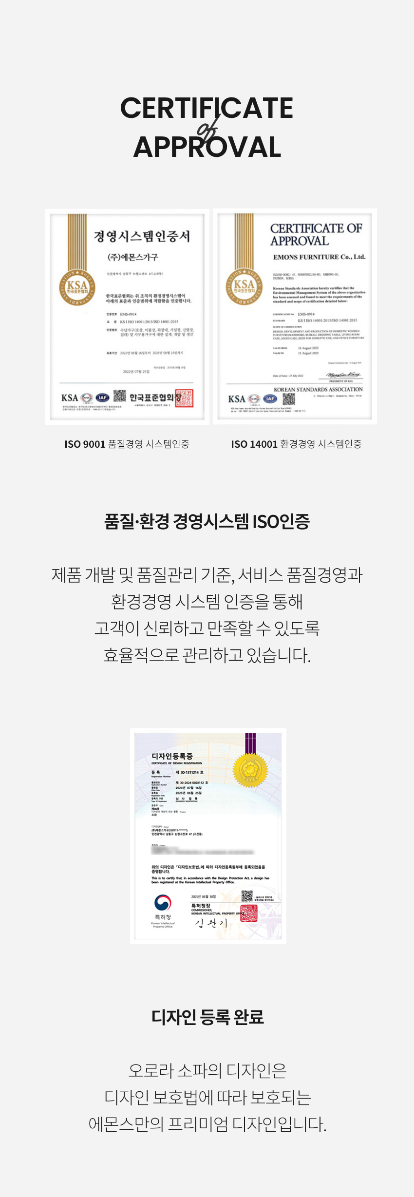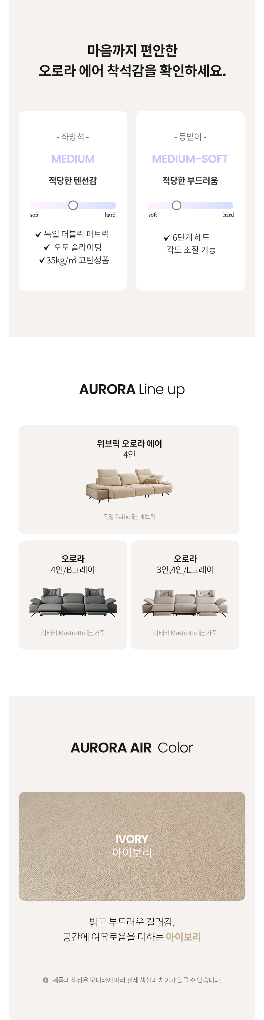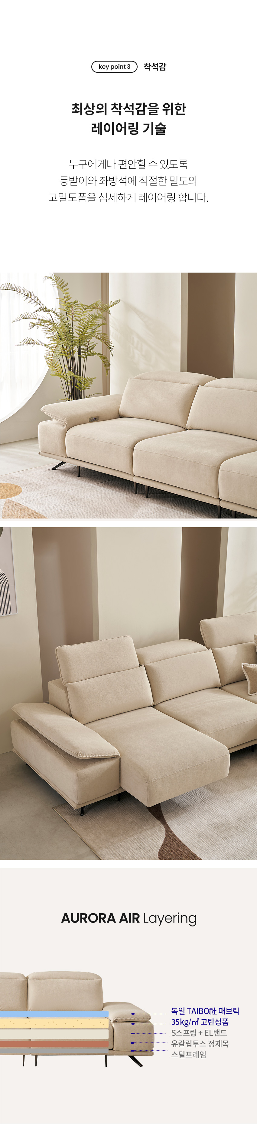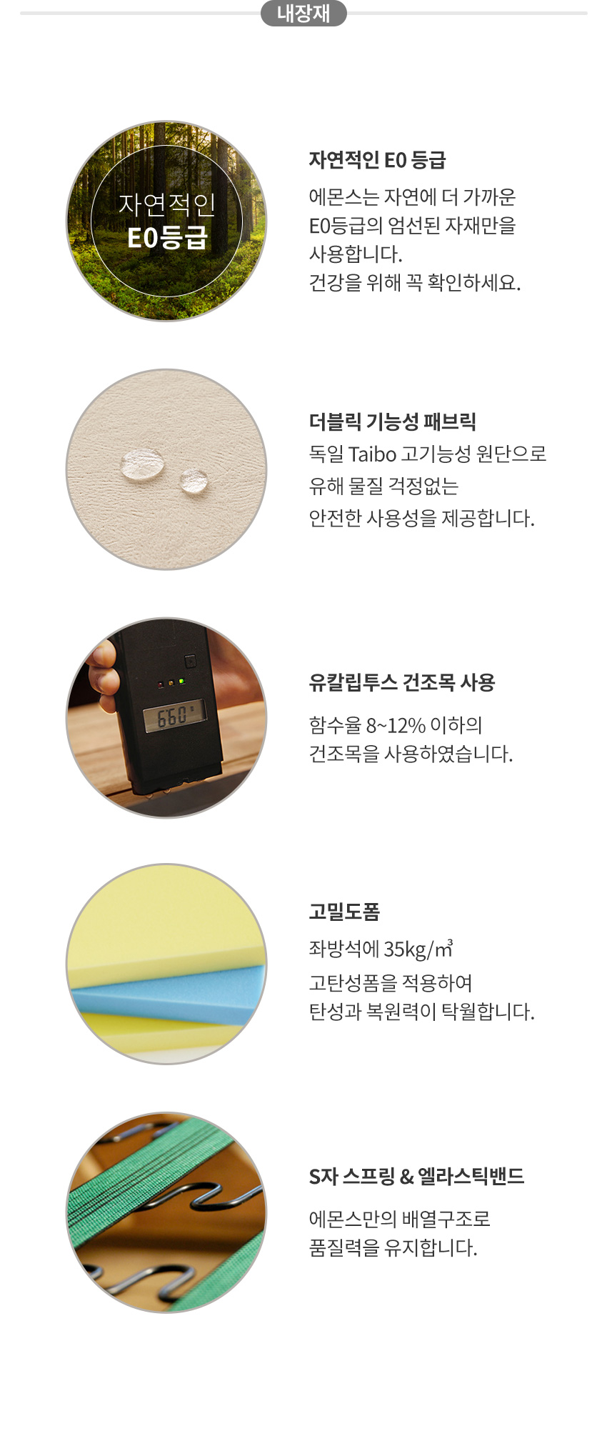 [마감재]독일 Taibo社 더블릭 패브릭[내장재]독일 OKIN社 모터, E0합판, 스틸프레임, 유칼립투스 정제목, 엘라스틱밴드, S자 스프링[등쿠션]고탄성폼[좌방석]35kg/㎥ 고탄성폼