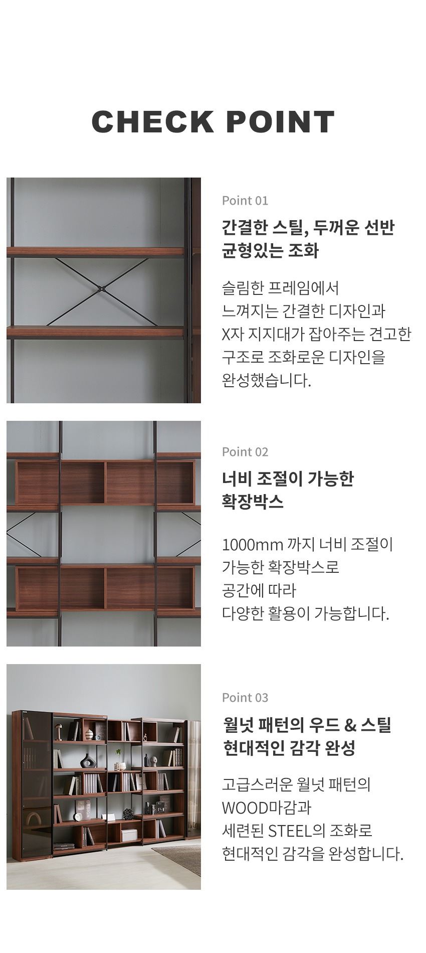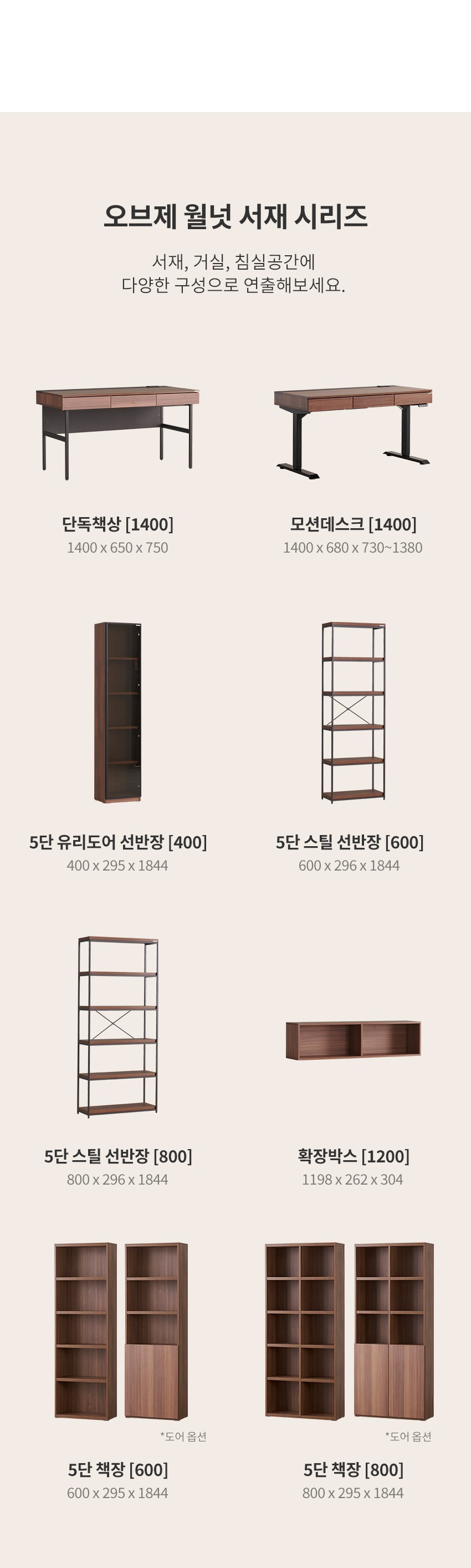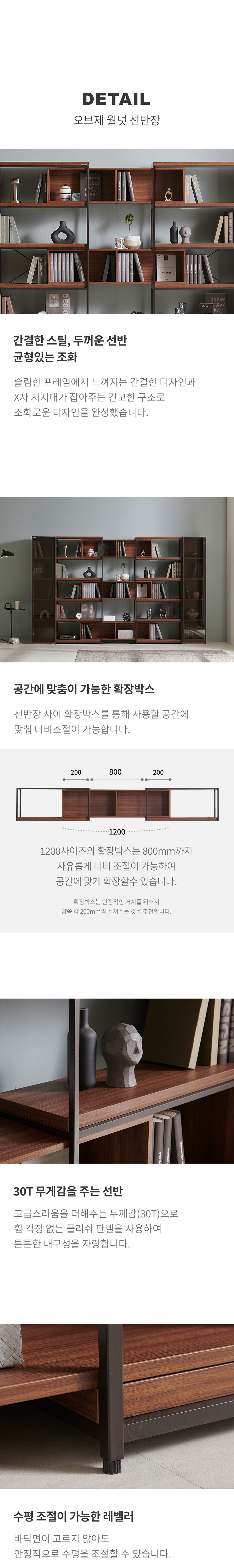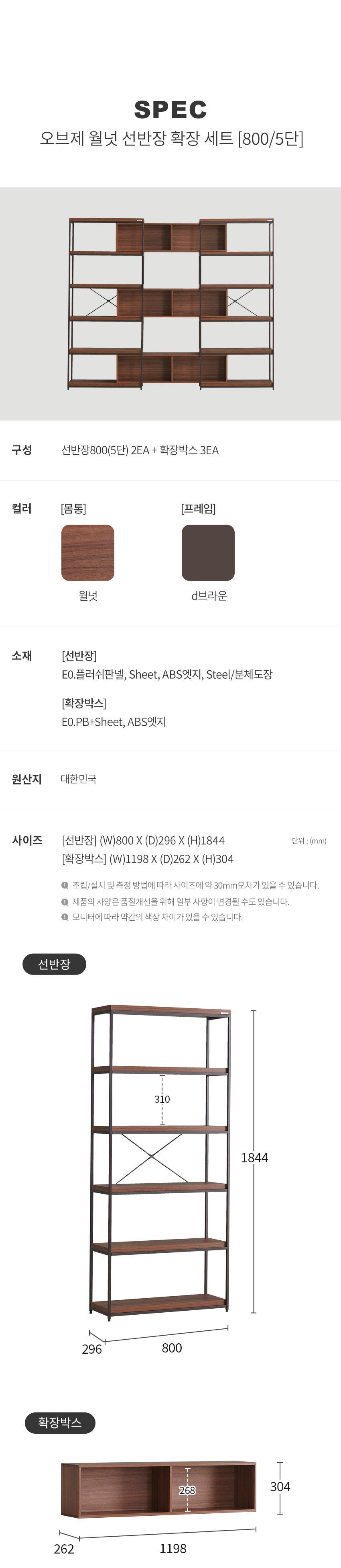 오브제 월넛 선반장 확장 세트 [800/5단]