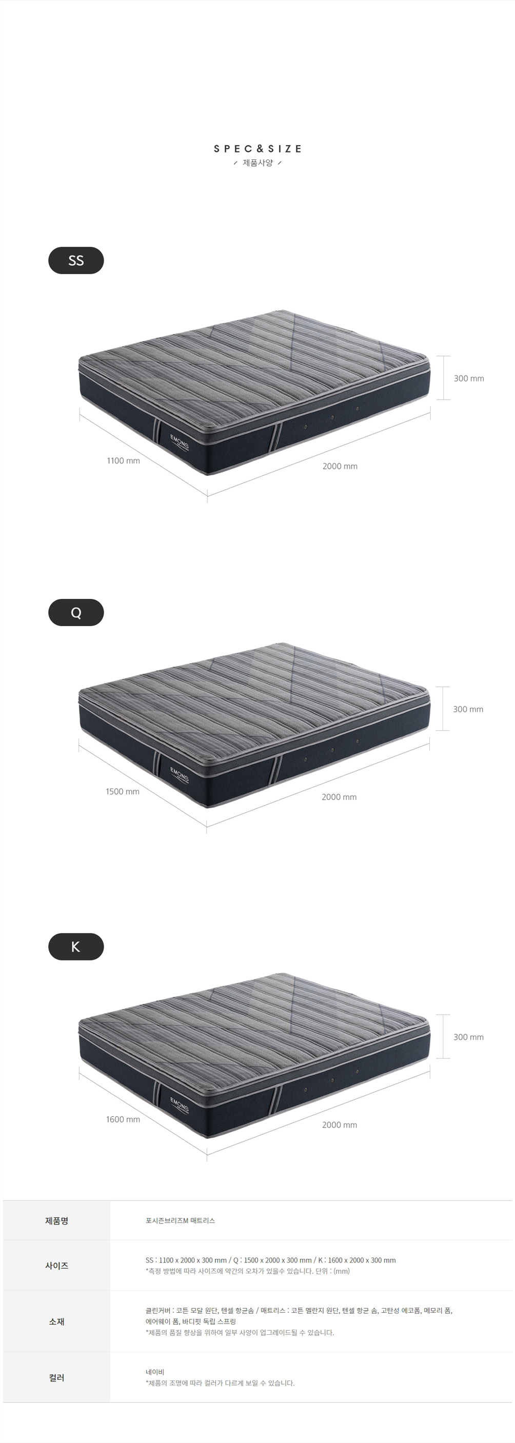 SS : 1100 × 2000 × 300 (+0원)Q : 1500 × 2000 × 300 (+380,000원)K : 1600 × 2000 × 300 (+540,000원)