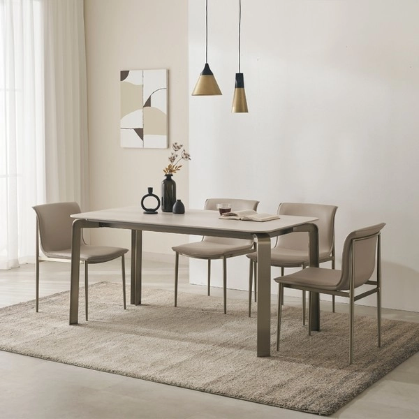 식탁 : 세라믹(포세린), 애쉬원목, MDF(E0), 애쉬무늬목의자 : 합판(E0), 애쉬원목, LVL 합판, PVC, 스펀지
